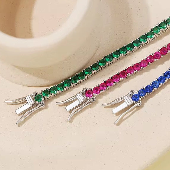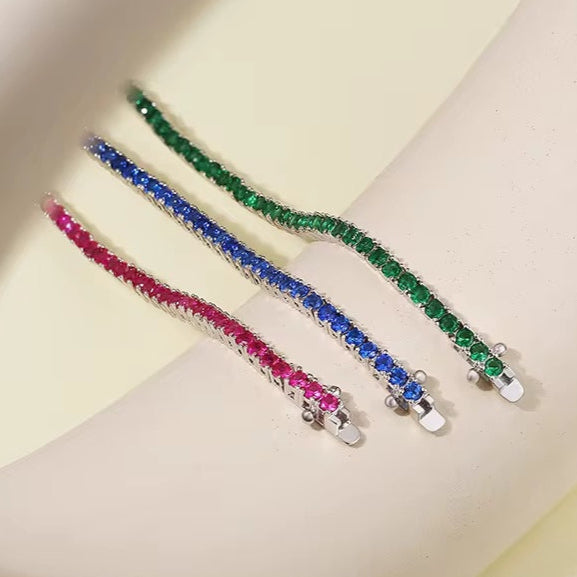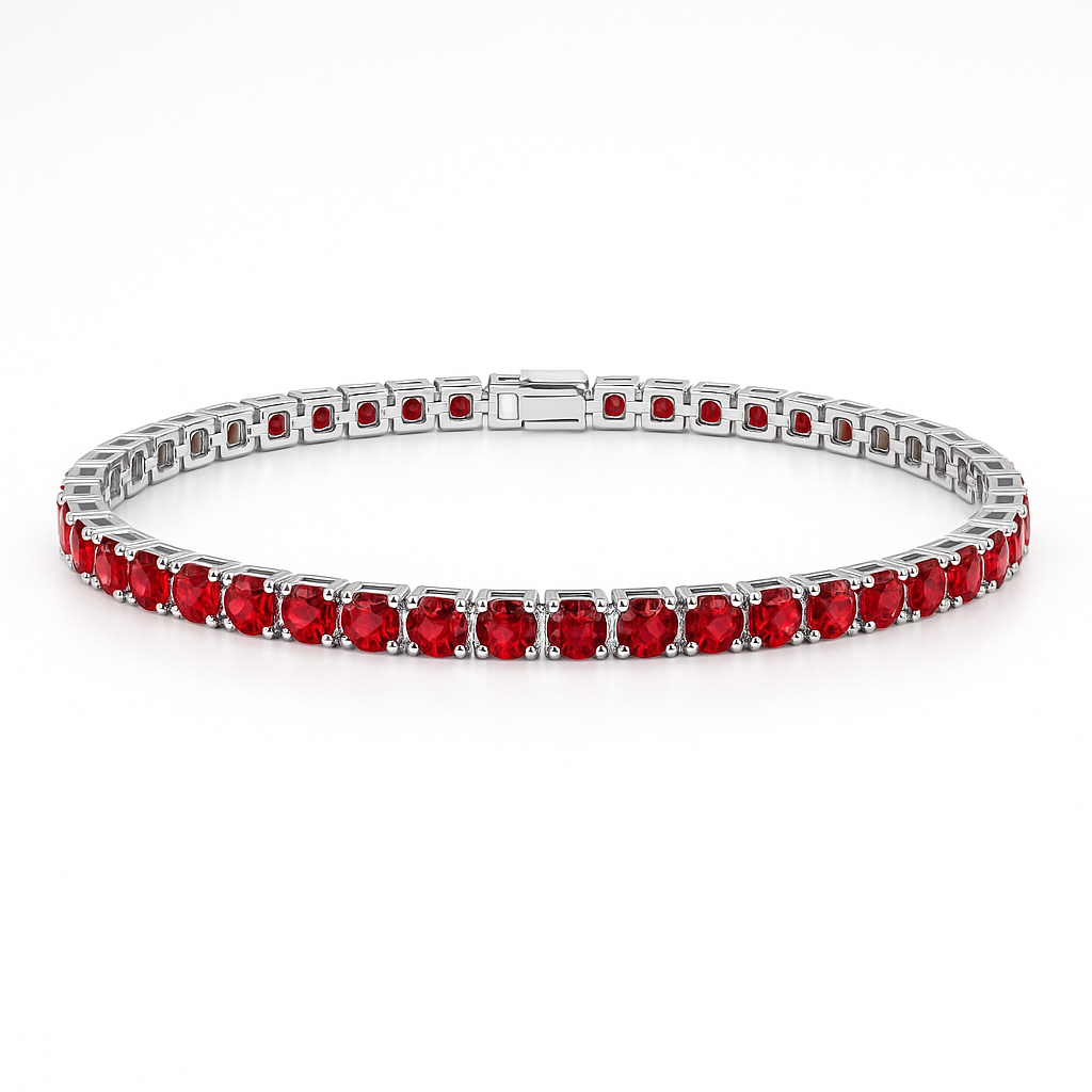 Affichez votre style avec audace grâce à ce bracelet tennis en argent 925 rhodié, orné de superbes zirconiums rouges de 3 mm, évoquant l’éclat intense du rubis. Chaque pierre, parfaitement alignée, capte la lumière et sublime votre poignet avec raffinement.