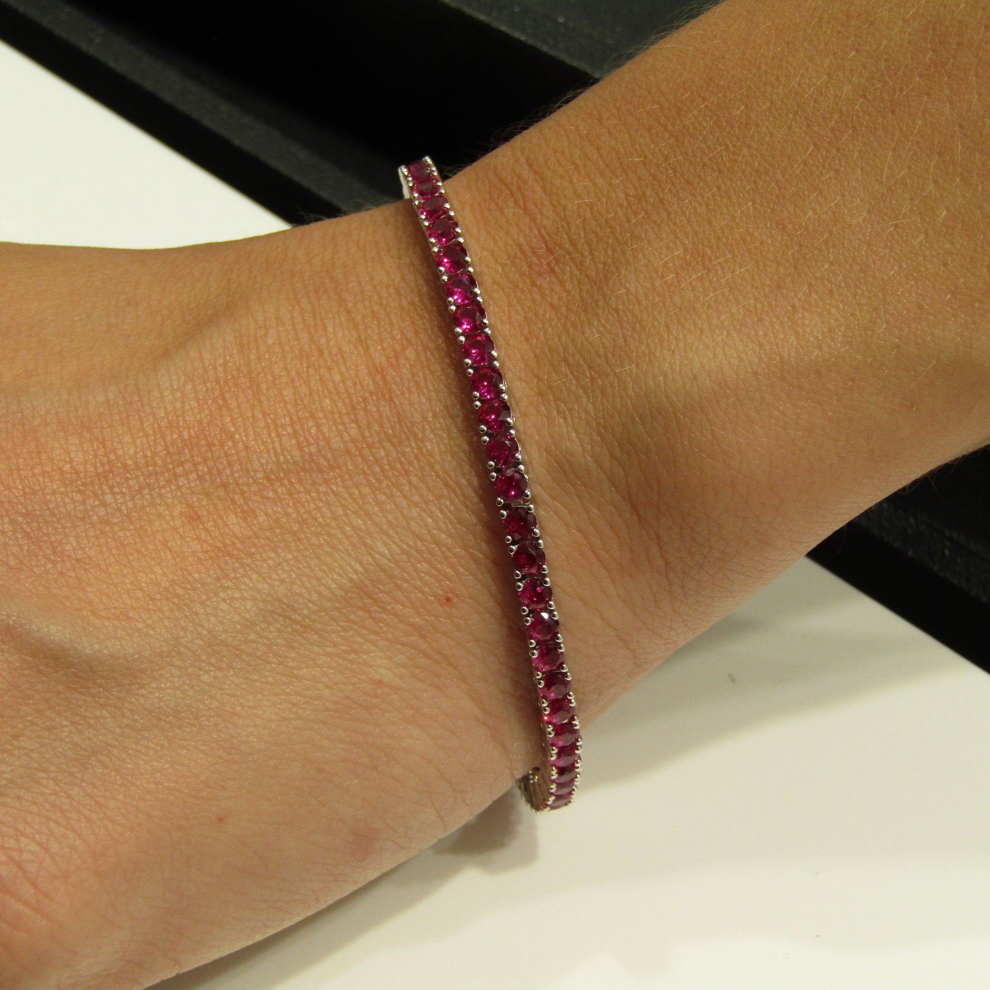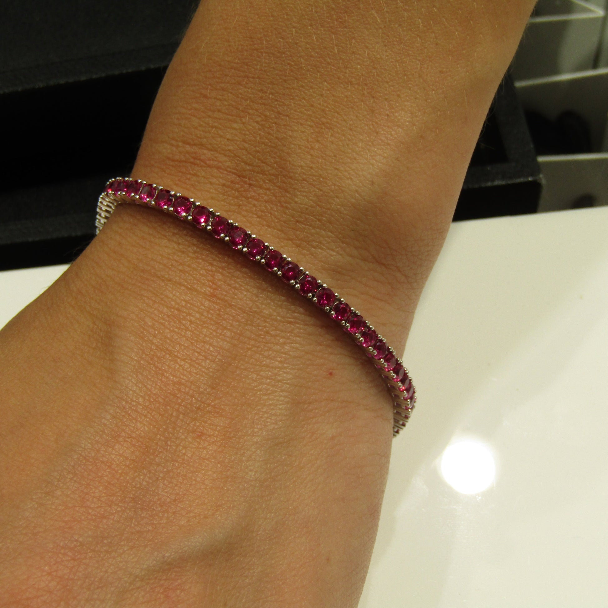 Bracelet tennis argent 925 rhodié – Zirconiums rouge rubis 3 mm
