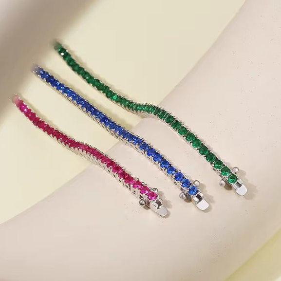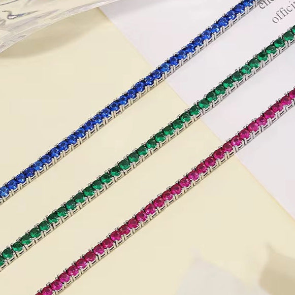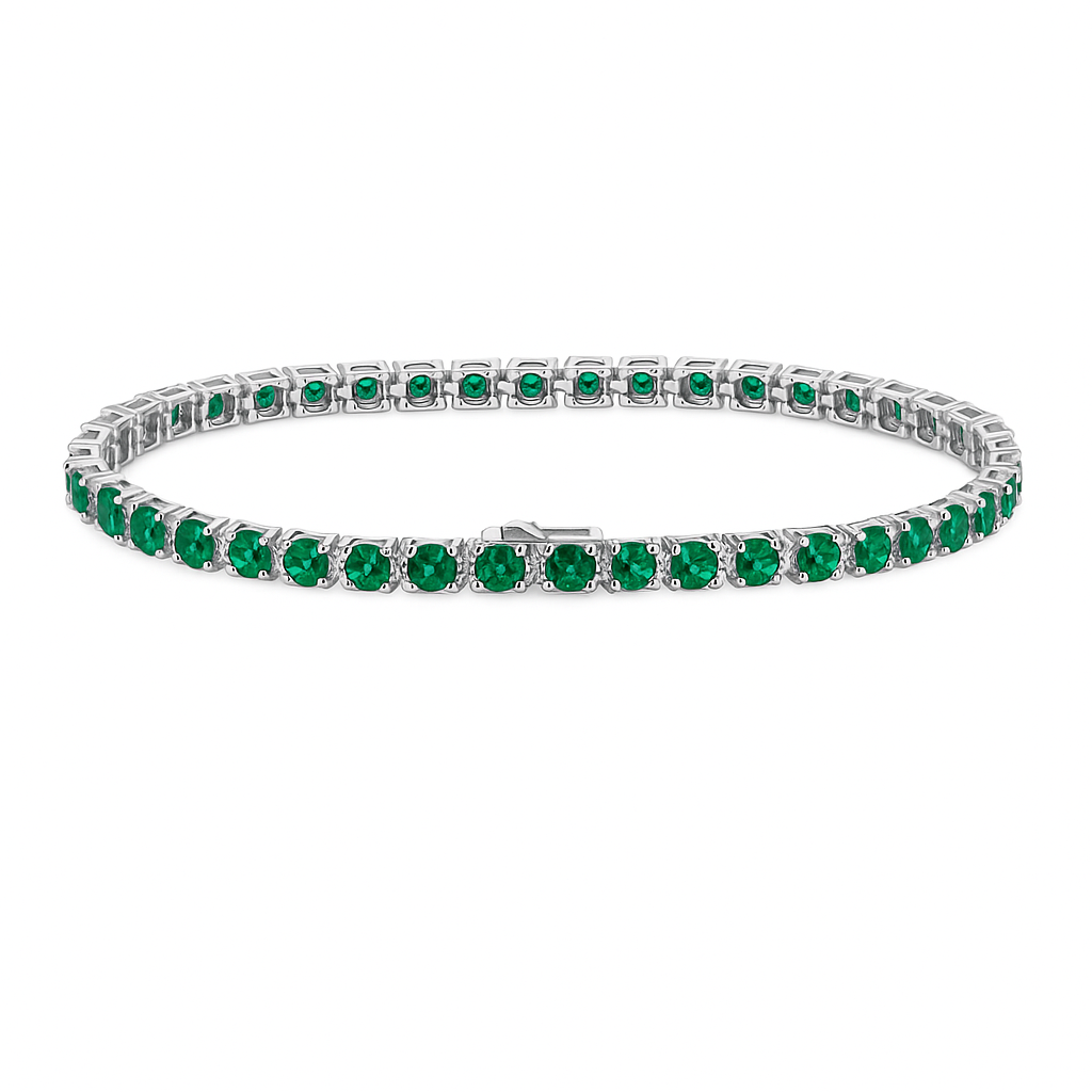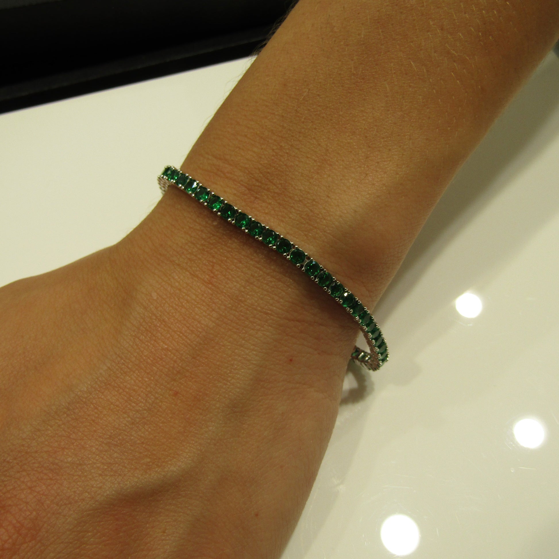 Bracelet tennis argent 925 rhodié – Zirconiums vert émeraude 3 mm
