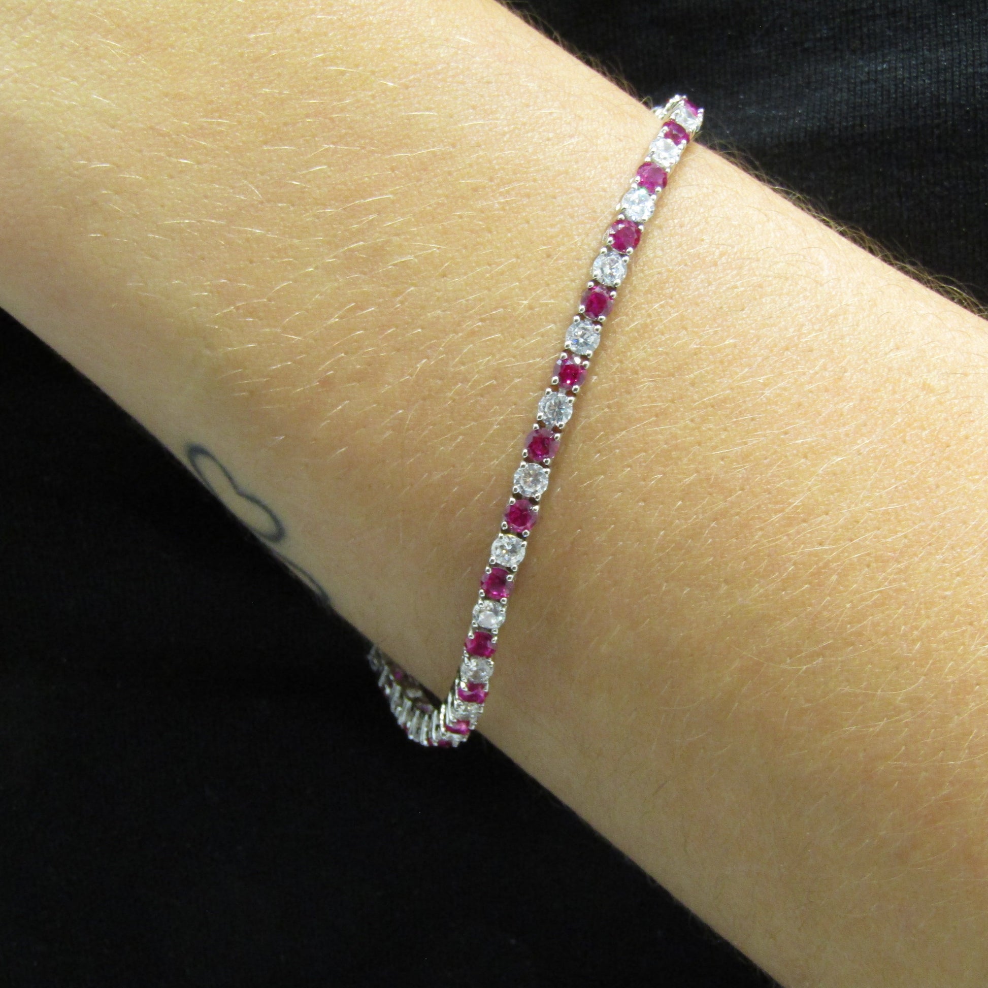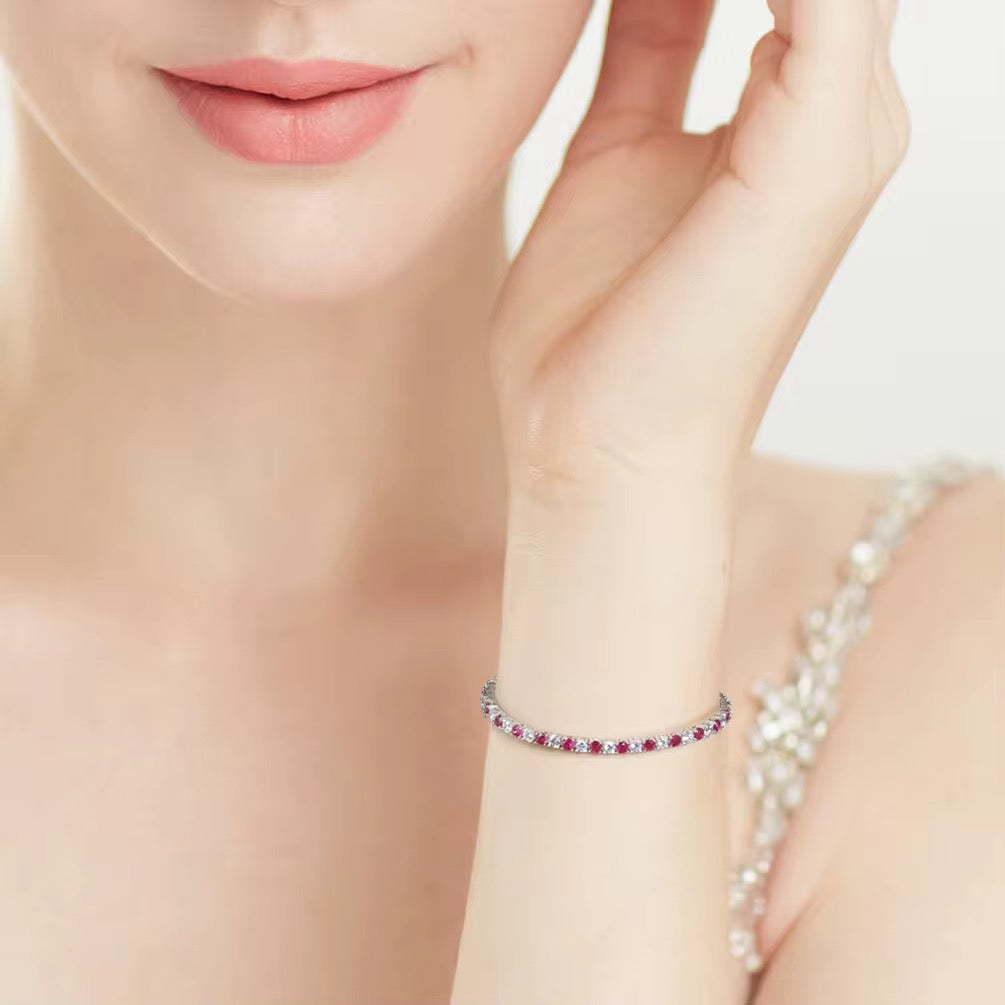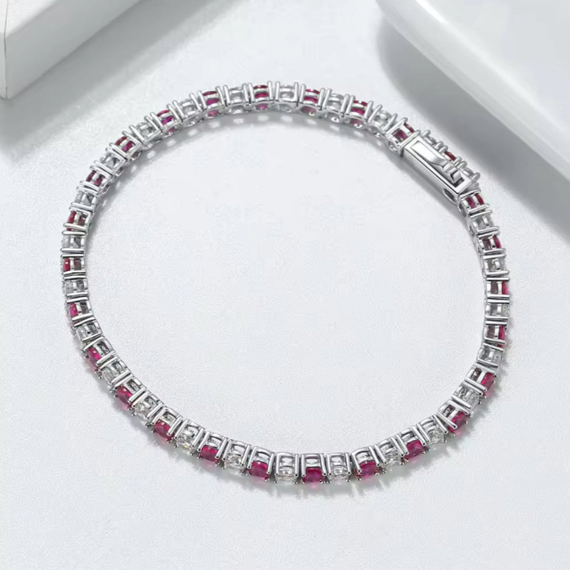 Bracelet tennis en argent 925 rhodié et zirconiums rouges – Élégance éclatante
