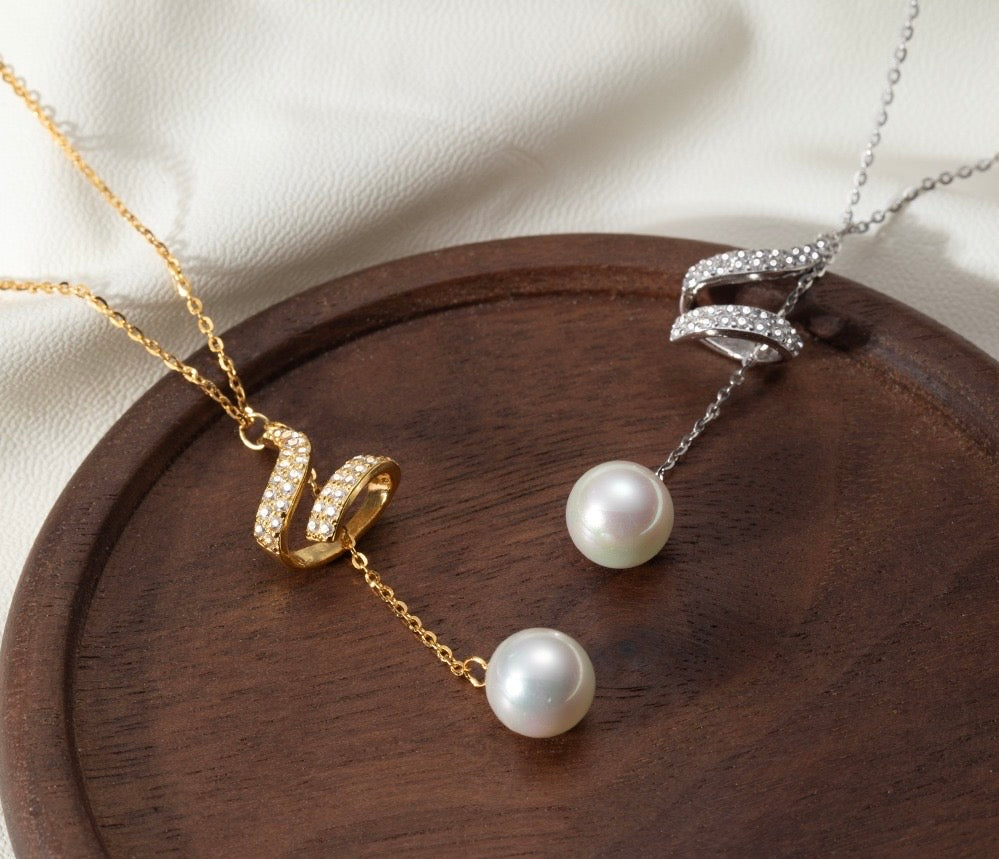 Collier argent 925 rhodié perle et oxydes de zirconium – Élégance ondulée